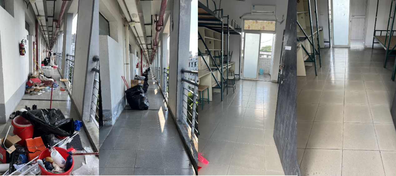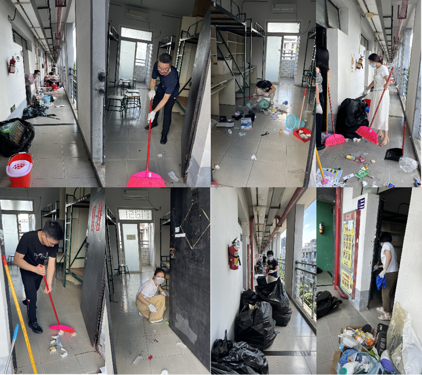 活动中,党员同志们分工协作,密切合作,充分发挥不怕苦、不怕累的精神,积极主动拿起扫帚、拖把、垃圾袋等清洁工具,顶着高温,对学生宿舍、走廊及阳台进行了全面清洁打扫,将宿舍还原成干净整洁的初始状态,以保证2023级新生拥有舒适的宿舍环境。经过大家一下午的劳动,整个学生宿舍舒适整洁、焕然一新。